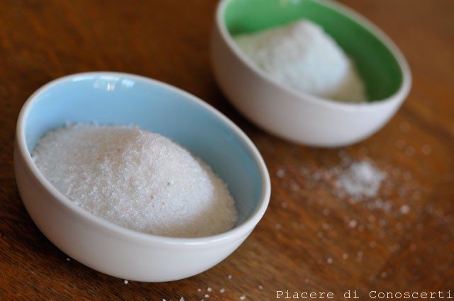 Intanto consiglio a tutti coloro che mi leggono di usare sempre e solo sale integrale, la natura ci ha fornito di tutto ciò che ci serve e noi come al solito l’andiamo a raffinare, a deturpare dei preziosi componenti di cui è composto naturalmente. Il sale raffinato, è lavorato chimicamente, vengono aggiunti sbiancanti e stabilizzanti e la raffinazione porta via tutto, impurità ma anche sostanze nobili di cui il sale è composto all’origine. Il sale iodato per esempio è un sale al quale è stato tolto lo iodio naturale e dopo la raffinazione rimesso iodio chimicamente! Nel sale integrale invece lo iodio è presente naturalmente ed è quello che serve a noi per una corretta assunzione di questo componente.