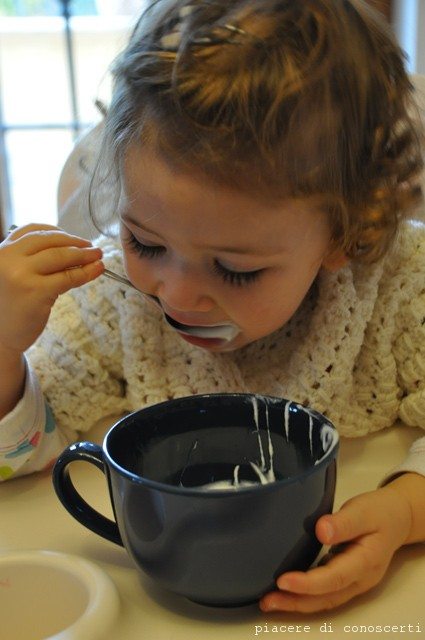 Premetto che Annalisa non gradisce il latte, l’ho allattata fino a 14 mesi e da quel momento in poi ha detto basta, a volte lo beve freddo ma non riesco a darle una colazione completa a base di latte e quindi io una sera si e una sera no devo fare le yogurt perchè tra me e lei in 2 mattine che ne pappiamo un bel pò!