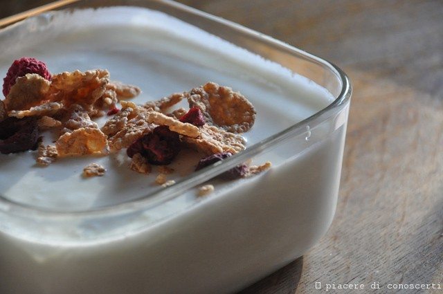 La mattina dopo abbiamo un buono yogurt da mangiare magari con i cereali ai frutti rossi come piace a noi!