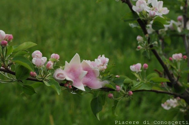 Il fiore è pronto per essere messo sul nostro ramo, vi garantisco che è venuto di una delicatezza assoluta e visto  in mezzo a questi fiori di melo non sfigurava affatto…anche se comunque Madre Natura non si batte!