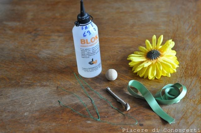 - una pallina di legno o di qualsiasi materiale (io ho usato le palline che si vendono per profumare gli ambienti)