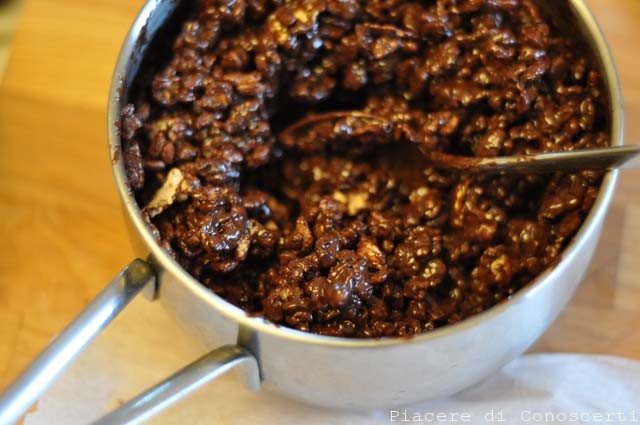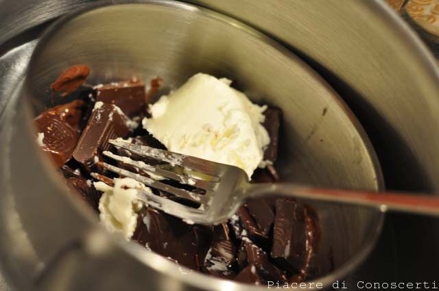 Il procedimento è semplicissimo, si sciolgono a bagnomaria la cioccolata il miele e il burro