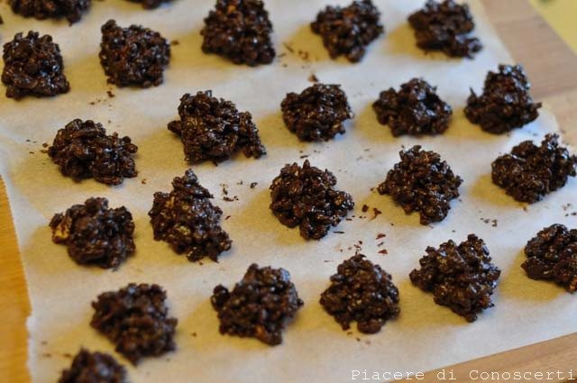dopo di che si formano dei piccoli mucchietti e si fanno freddare in un luogo fresco e ventilato…a trovarlo in questi giorni aggiungo io! (va bene anche in frigorifero)