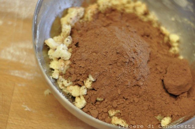 Il pomeriggio mi accorgo di non avere i biscotti secchi…ops e come faccio? Vabbè dai faccio la pasta frolla, ci faccio i biscottini e poi con quelli faccio il salame…ma nel frigo: niente uova!