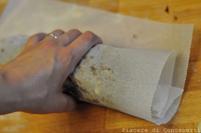 L’impasto che otteniamo deve essere messo nella carta forno e arrotolato a forma di salame,