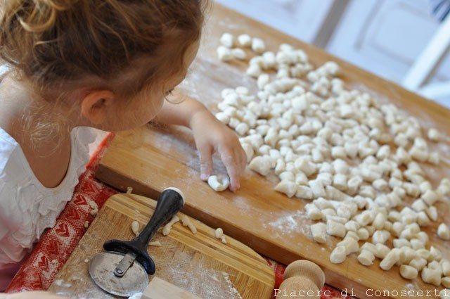 Impastare, fare delle striscette e tagliare gli gnocchi! Annalisa mi ha fatto anche il buchino per far aderire meglio il sugo!