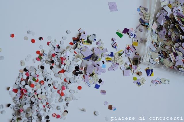 Anche io e mia sorella da piccole usavamo i coriandoli che venivano fuori dai fogli che si usavano una volta per le stampanti degli uffici!!! E che divertimento…. Quindi… bravissime e buon lavoro!!