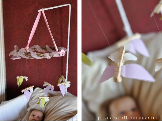 …e il gioco che più apprezzerà un neonato è la famosa giostrina…ovviamente la facciamo in casa quindi niente suoni e luci ma solo natura e delicatissimi colori pastello!