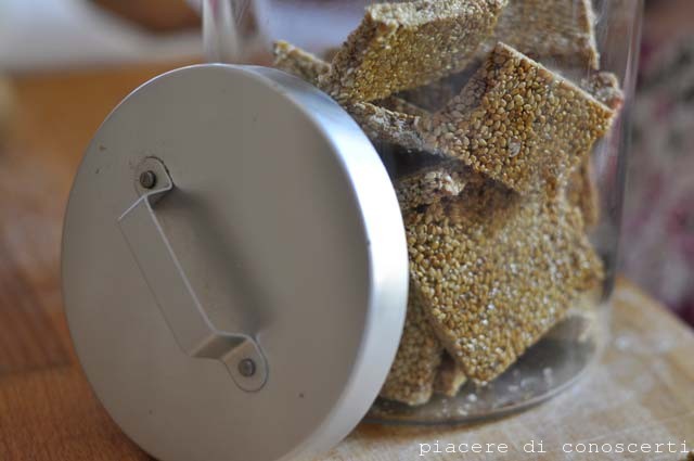Adoro i croccantini di sesamo, mi ricordo che con Paolo quando eravamo ragazzini ce li regalavamo nella calza della befana, mettevamo sono quelli…
