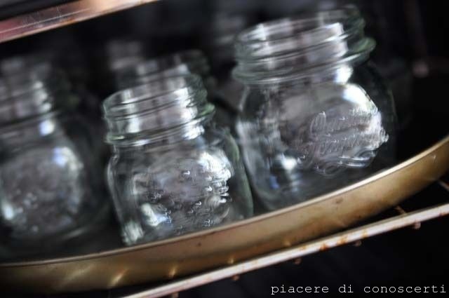 Intanto avremo sterilizzato i vasi puliti nel forno a 150 gradi per 10 minuti