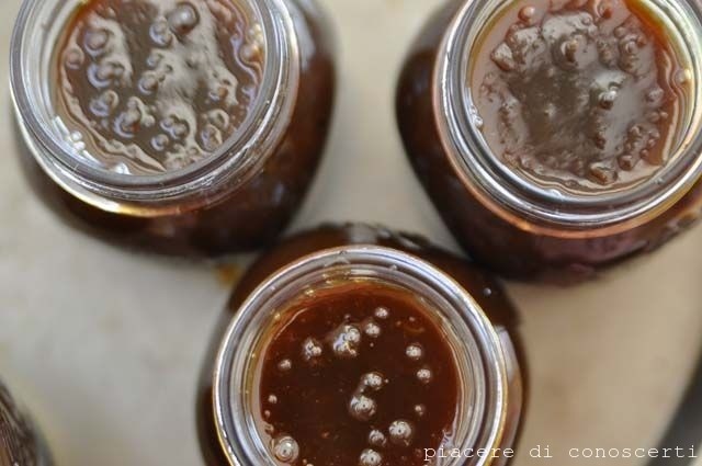 Versiamo la marmellata bollente nei vasetti caldi e chiudiamo immediatamente con tappi nuovi.