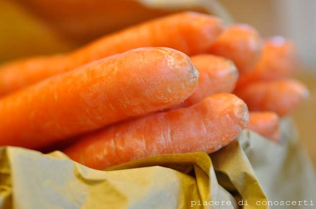 Ho usato solo carote giovani, non ce le ho nel mio orto ma le prendo dal contadino con ancora il cespo di foglie attaccato, indice di freschezza. Bisogna pelare le carote e tagliarle a cubetti, sbiancare per 2 minuti, far freddare e conservare nei sacchetti.