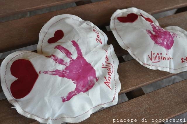 Il lavoretto è semplicissimo e di immediata comprensione, io come colori per le impronte ho utilizzato delle semplici tempere, basta non mettere il cuscino a contatto con l’acqua e il colore non andrà via.